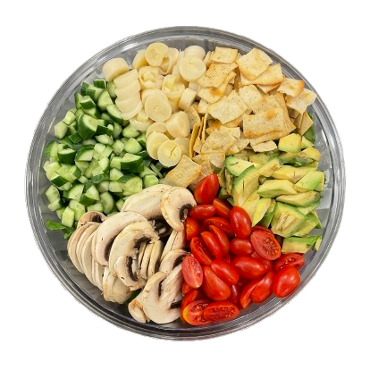 Base: Lettuce Toppings: Cucumber, Mushrooms, Avocado, Hearts of Palm, Cherry Tomatoes, Nish Nosh Dressing: Creamy Nish Nosh